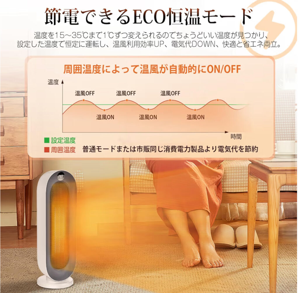 「つけっぱなしでも安心」「節電モードで暖かい」——そんな口コミが多いのも納得。電気代を気にする家庭には、まさに理想的な省エネ暖房器具です。