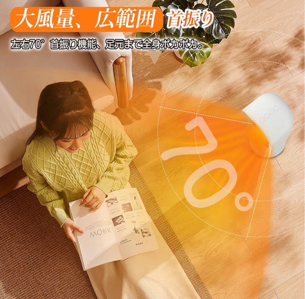 「セラミックヒーター」と聞くと、じんわり暖まるイメージを持つ方も多いかもしれません。ですが、このLAOGOT S720は違います。