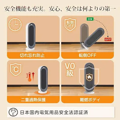 - 転倒自動オフ機能:万が一倒れても自動で電源オフ