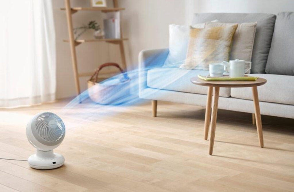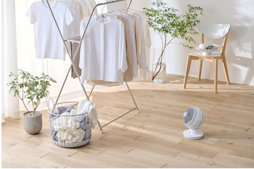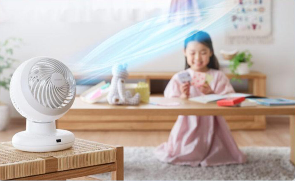 ここで活躍するのがサーキュレーターです。直進性の強い風で空気を動かし、部屋全体を効率よく循環させます。すると温度ムラが解消され、エアコンの設定温度を極端に調整する必要がなくなります。