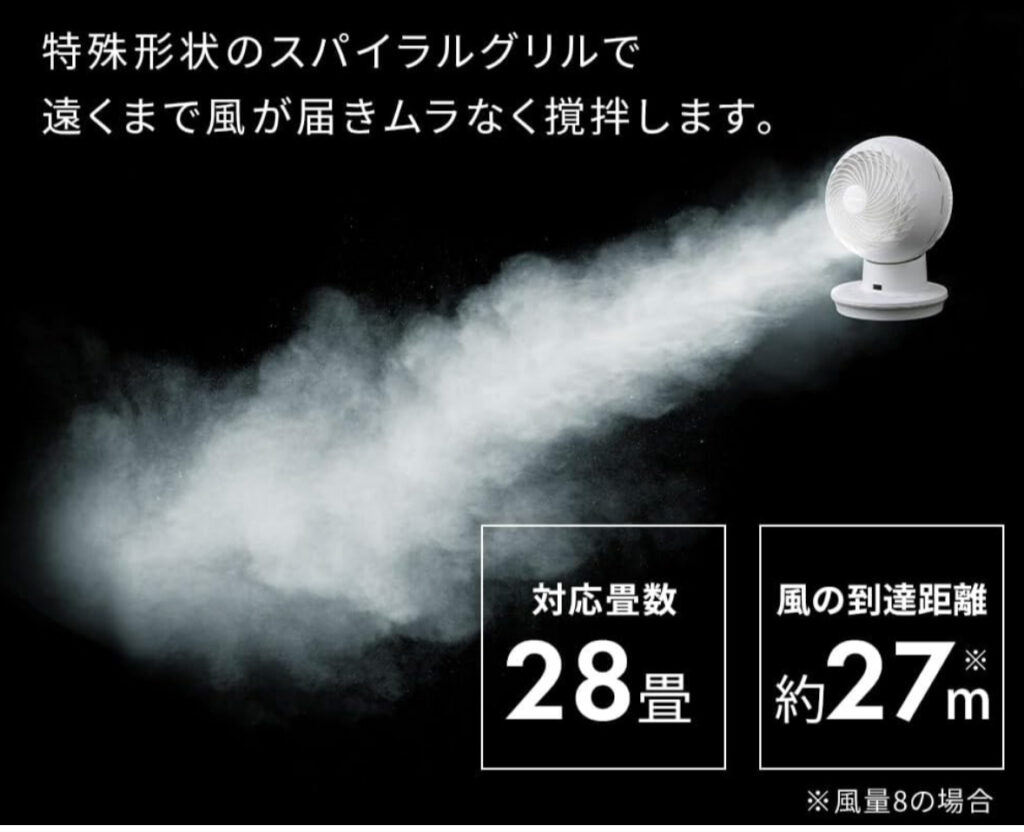 - 28畳対応のパワフル送風で空気をしっかり循環
