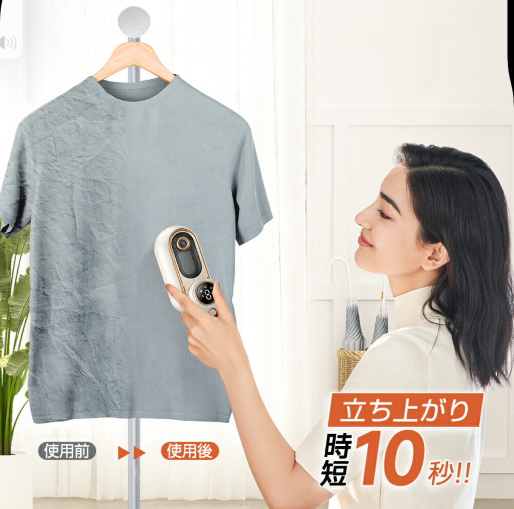 もし、電源を入れて10秒で使えて、ハンガーにかけたままサッとシワが伸びるアイロンがあったらどうでしょうか。しかも、折りたたんで持ち運べて、除菌や脱臭までできるとしたら。