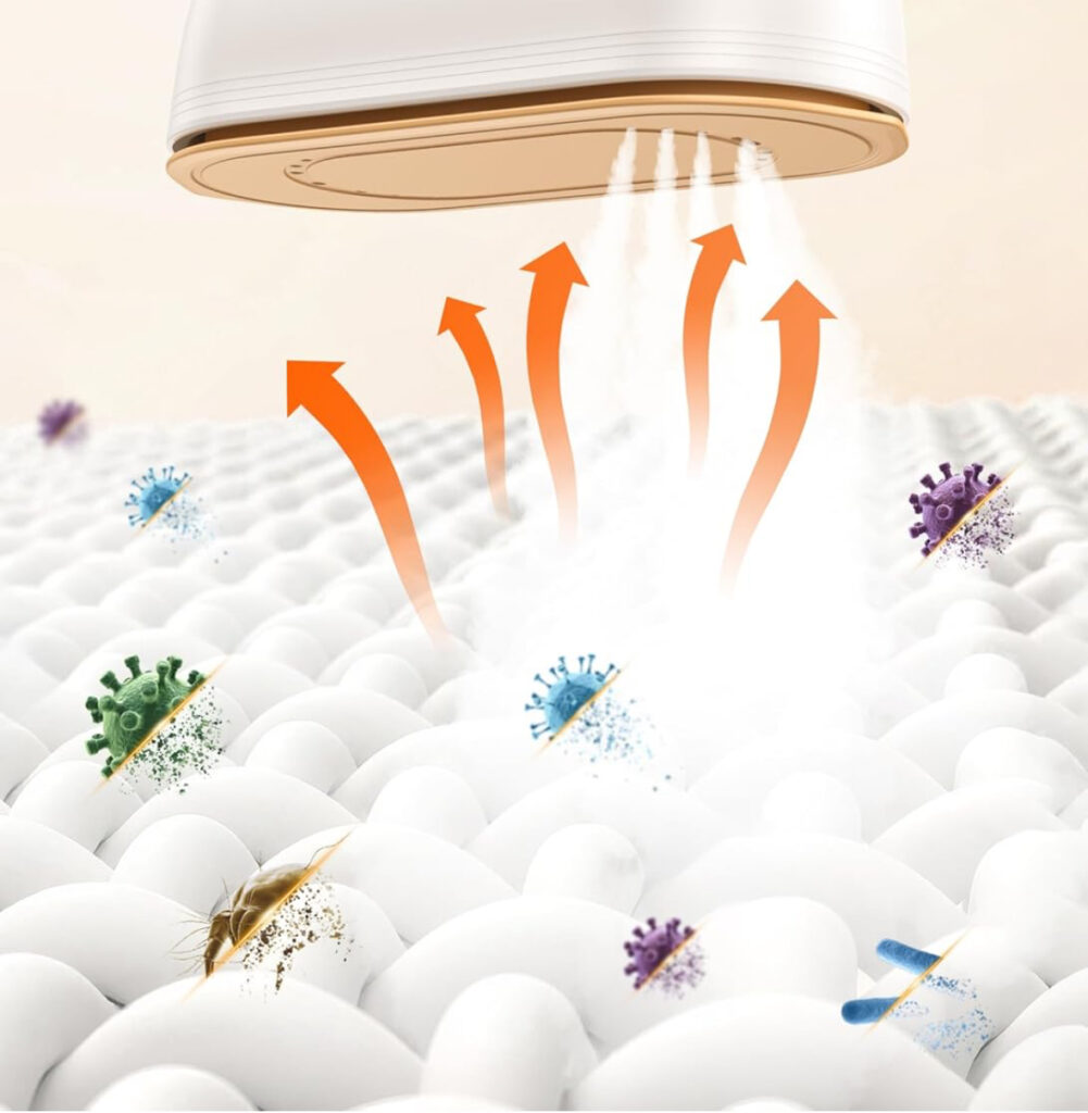 eueスチームアイロンの魅力は、シワを伸ばすだけにとどまりません。約150℃の高温スチームにより、衣類を“清潔に保つ”という付加価値まで実現している点が大きな特徴です。