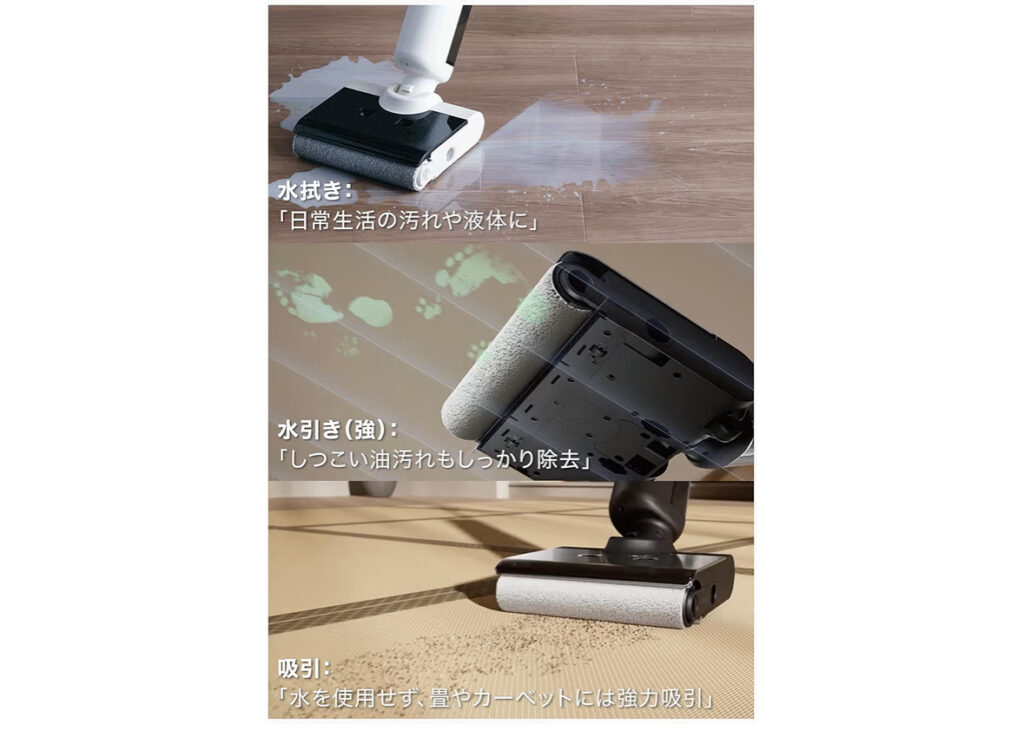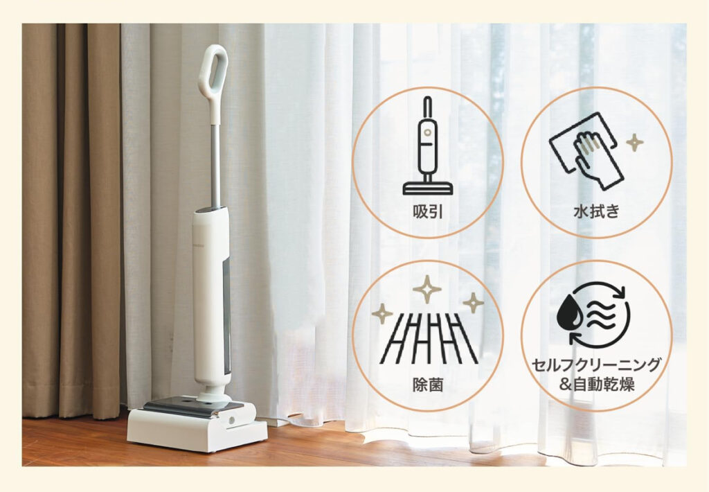 掃除機をかけて、そのあとにモップや雑巾で水拭き。時間に余裕があれば理想ですが、忙しい毎日の中でそれを徹底するのは簡単ではありません。だからこそ今注目されているのが、吸引と水拭きを同時にこなす掃除スタイルです。