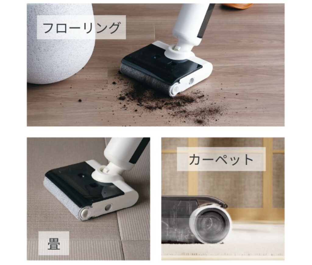掃除機とモップを持ち替える必要がなく、動作はたった一度で完結します。