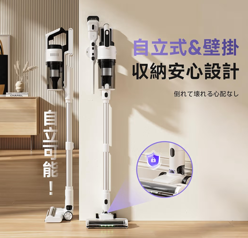 75kPaの強力吸引と最大55分の連続稼働は、短時間でもしっかり掃除を終わらせる安心感を生み、自立式・軽量設計によって掃除の準備や片付けというストレスを取り除いてくれます。