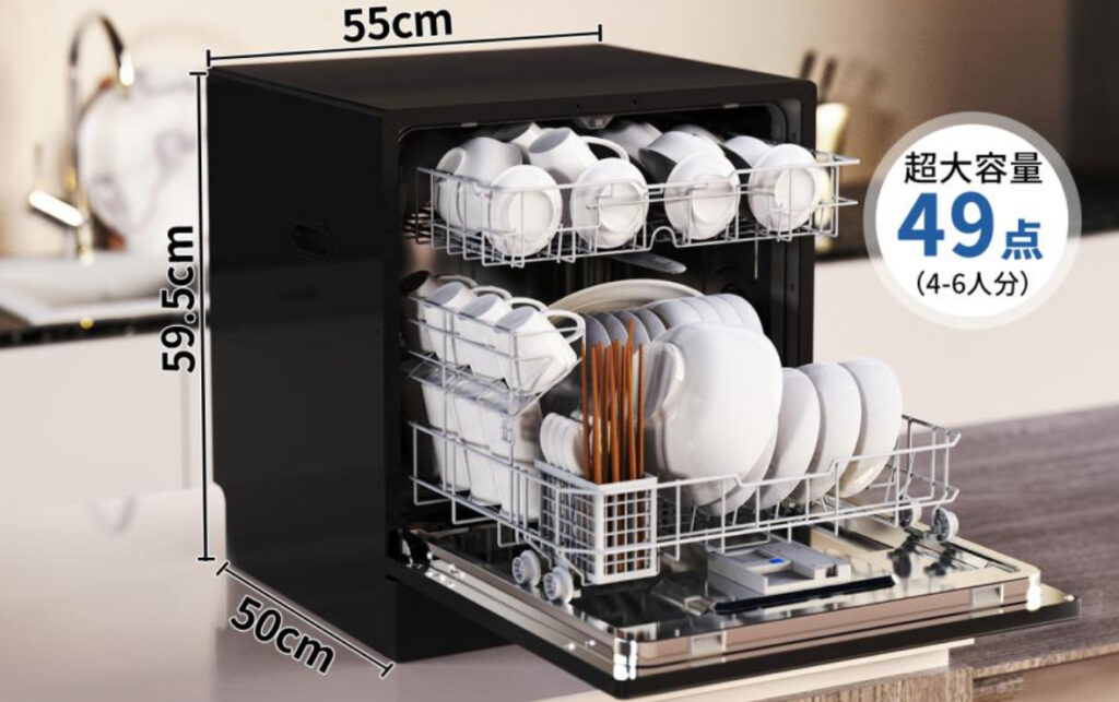 そんな悩みを解決してくれるのが、工事不要で使える大容量食洗機「T80 ブラック」です。最大49点の食器を一度に洗える4〜6人用の大容量設計で、家族分の食器もまとめて洗浄。