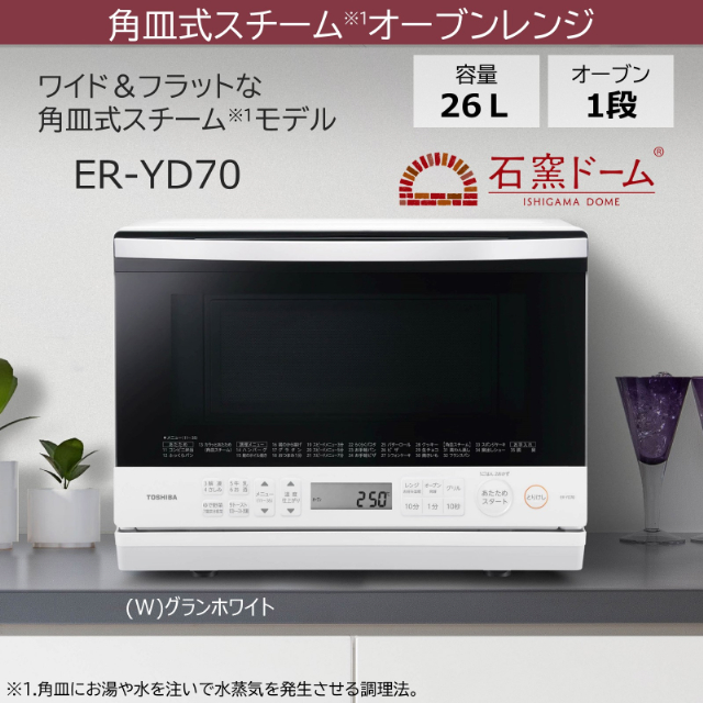 石窯ドーム ER-YD70(W) は、東芝の人気シリーズ「石窯ドーム」の26Lモデル。